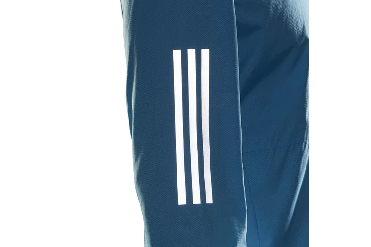 Ignore the forecast. This adidas running jacket keeps you comfortable whatever the weather. The hooded jacket is water-repellent, so it can handle gusts of wind and sudden showers. Reflectivity on all sides lets you stand out in the gloom.