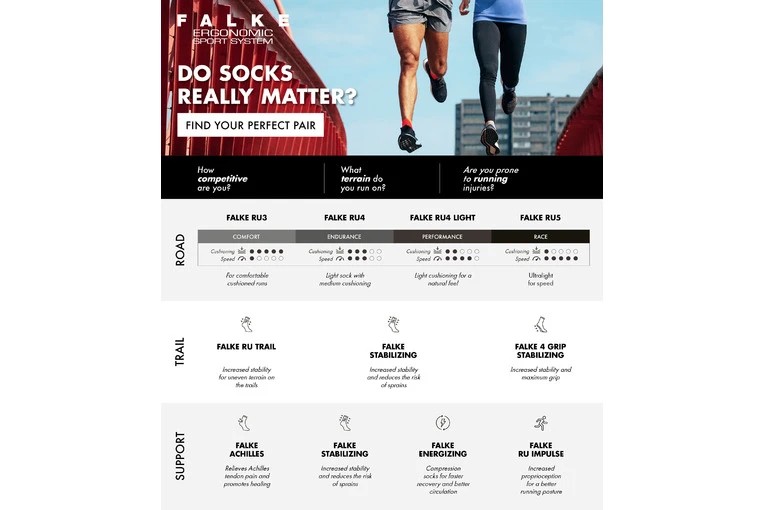 Met zijn medium polstering is de RU4 voor dames onze allround sok die zorgt voor een uitgebalanceerde bescherming met gemiddelde demping en ook een goed schoencontact. Bovendien vermindert de polstering drukplekken en biedt hij bescherming tegen blaren. Het snelle vochttransport en de optimale pasvorm garanderen comfortabele en sportieve looptrainingen.