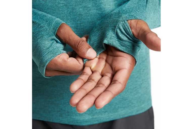 Dankzij de duimgaten in de mouwen blijven je handen goed bedekt door het voorgevormde design, voor extra warmte wanneer je die nodig hebt.
