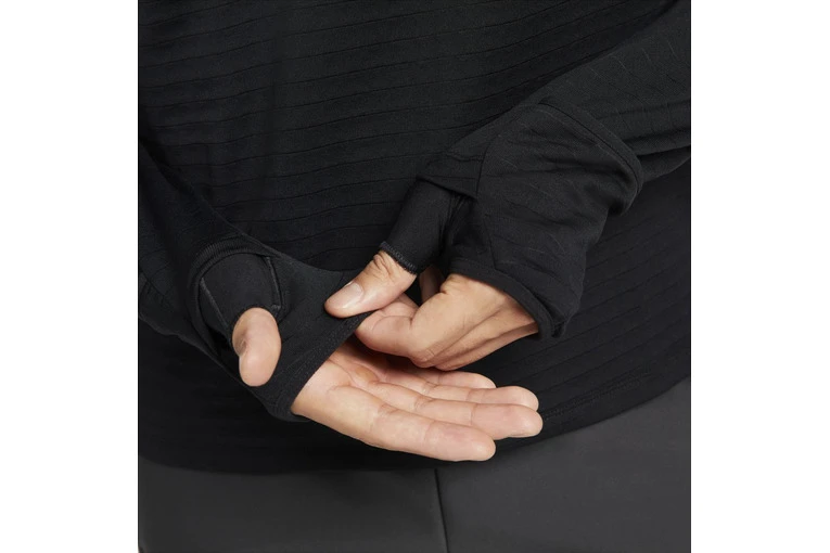 Nike Therma-FIT technologie gebruikt je natuurlijke lichaamswarmte om je lekker warm te houden bij koud weer. De combinatie met waterafstotend materiaal in de hele top houdt je droog. Over het hele bovenlichaam is wollen materiaal aangebracht voor extra warmte.