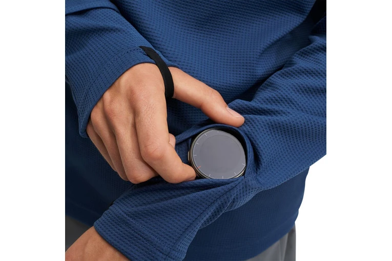 Dit shirt is voorzien van duimgaten zodat je handen beter bedekt blijven en daardoor van meer warmte kunnen genieten. Je hoeft je mouwen ook helemaal niet op te stropen om het scherm van je sporthorloge te kunnen zien. Dankzij een handige opening steek je het venster er gewoon door en kan de koude niet aan je.