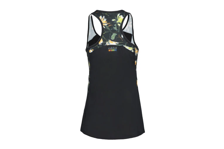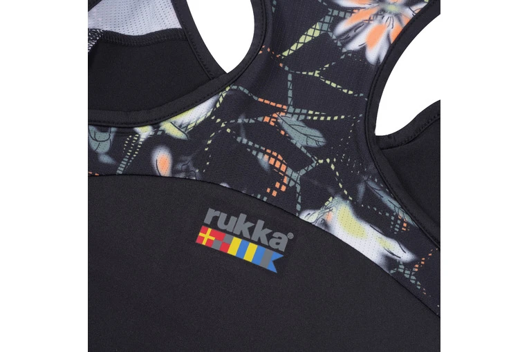 Het beste kledingstuk voor hardlopen, de sportschool of andere sporten is het soort dat u nauwelijks opmerkt. De Rukka Maanselka mouwloze workout top is gemaakt van een lichte 4-way-stretch stof die het gewicht minimaliseert en niet beperkend aanvoelt tijdens het bewegen. De stof voert vocht af van de huid, zodat u zich niet onaangenaam bezweet voelt. De schouders en zijkanten zijn gemaakt van een extra ademende netstof.