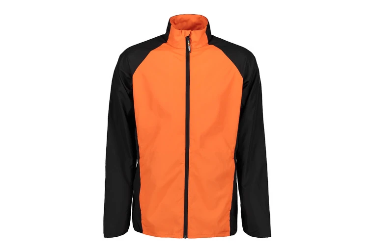 Lightweight men’s running jacket. This jacket is a great practical addition to your sports clothing. The windproof and water-repellent material ensures excellent comfort, while the ventilation openings on the back improve air circulation. The zipped front pockets will keep small items safe and sound. Put your running shoes on, and off you go!