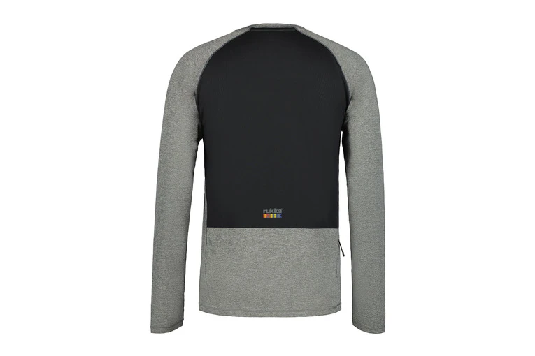 Het Rukka Melko technisch T-shirt met lange mouwen heeft raglanmouwen die de beste bewegingsvrijheid en comfort bieden tijdens het sporten. De stof is dun en lichtgewicht, en het transporteert vocht goed. De bovenkant van de rug is gemaakt van een geperforeerd mesh materiaal voor extra ademend vermogen. Aan de rechterkant van de zoom zit een klein zakje met rits waar je gemakkelijk je sleutels in kunt opbergen tijdens een workout.