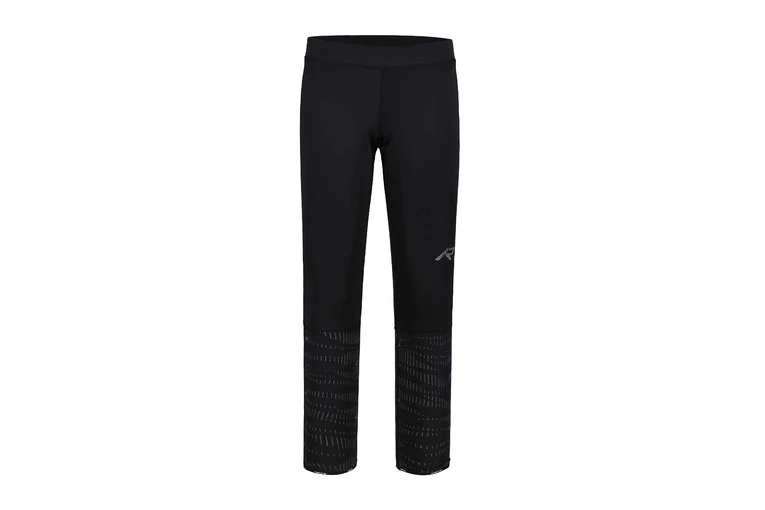 Women’s running tights with a reflective decorative print. These skin-tight sports trousers made of stretchy knit material are suitable not only for running but also for the gym and other sports. These tights have a stretchy waist band and zippers on the legs. The waist has a zippered pocket at the back which opens from the side and can be used for holding e.g., a phone. Below the knee and on the sides of the thighs there is a colourful print pattern.
